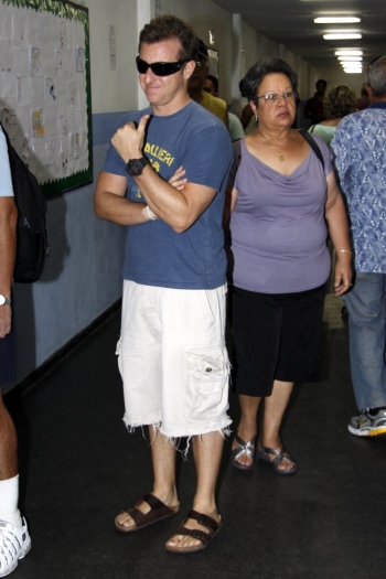 Edson Celulari também foi clicado indo às urnas. O ator vota na capital fluminense e chegou à sua seção eleitoral antes das 10h